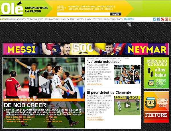 11/07/2013 01:12| Diário Olé não acreditou na derrota do Newell's Old Boys nos pênaltis contra o Atlético, no Horto |